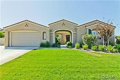 Stunning executive estate home situated on a quiet street in the Jurupa Valley. Make your way up to the huge front door. Home has an open spacious floor-plan starting with incredible ceilings. First you'll notice the GREAT Room with the Chef's kitchen that features a gigantic island w/sink, rich maple cabinets, granite counter-tops, and high-end appliances. Just off the kitchen is the dining room and family room with stone fireplace and TV area. Also in the GREAT room is a private study/desk space for doing homework. All bedrooms are really big...especially the master bedroom. Master Bedroom has it's own bathroom with his/her sinks, separate tub & shower and walk-in closet. This house also has its own laundry room. Now it's time to experience paradise in the backyard. Backyard features a huge covered patio area with professional landscaping, a sport court, large covered gazebo, and tranquil water fountain. Backyard also has an enormous 40x15 RV Garage. You will truly fall in love with every aspect of this home. It's centrally located to area amenities including Patriot High School, Cove Waterpark, and much more.