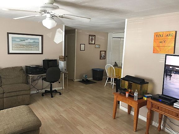 This all-age community is great, with an affordable lot fee. The home features central AC, in-unit laundry hookup, outdoor kitchen/entertainment, and updated interior. Located close to stores, schools and other amenities.