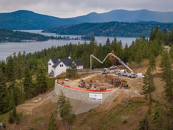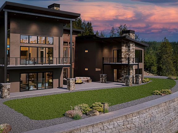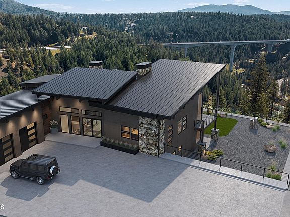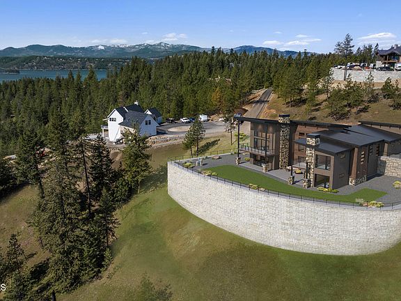 Set above Lake Coeur d'Alene on nearly 10 private acres, this cliffside retreat - named Roksana, meaning ''radiant dawn'' - captures the first light over the mountains, bay, and iconic Veterans Memorial Bridge. A blend of mid-century modern and mountain-west elegance, this 5,346 SF new-construction estate offers 5 bedrooms, 6 bathrooms, and soaring windows framing cinematic views. Sleek lines and natural materials create a serene yet dramatic atmosphere. Features include a chef's kitchen, 2-story glass wine room, game room bar, radiant in-floor heat, snowmelt walkways, smart home systems for lighting, audio, and climate, and a reserved boat slip at the Hagadone Quick Launch Marina. Just 10 minutes to downtown Coeur d'Alene and minutes from lake access and recreation. Completion December 2025.
