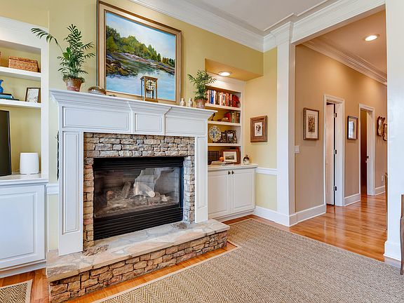 Impeccably built and maintained townhome in exclusive Gated Community. 10' Ceilings with beautiful crown molding throughout the main level. Amazing natural light pours in through the large windows with custom plantation shutters. Great view of the rare, large landscaped lot surrounding. Main level boasts hardwood floors that carry into the open kitchen, living room and sunroom. The inviting, stacked stone fireplace surrounded by built-ins will heat up the whole home on a cold, rainy day. Master bedroom has hardwoods throughout and ADDITIONAL cozy sunroom attached. The RENOVATED spa-like master bath will steal your heart! Secondary bath upstairs has been renovated with tiled, glass surround shower. Community amenities include pool, fitness center and nature trail.