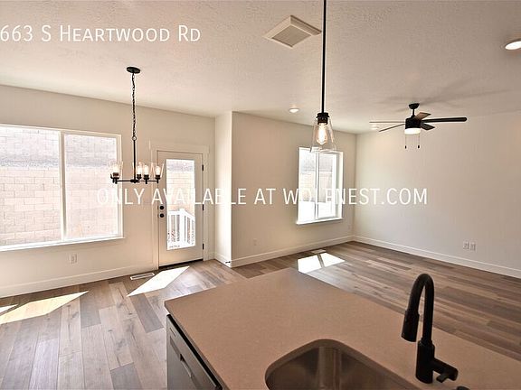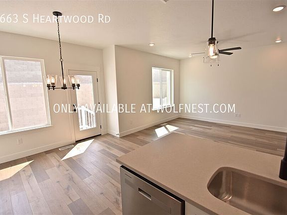 MOVE-IN SPECIAL: $500 Off The 1st Month's Rent & Application Fee Refund! Get approved, sign a lease, and we'll refund your application fees! Schedule a Showing and Submit an Application at Wolfnest . com No Security Deposit Option available on this townhome! This brand new townhome features an open floor plan and is conveniently located minutes from Hwy 6, Canyon View Park, I-15 & many shops and restaurants! It offers 4 bedrooms and 2.5 bathrooms spread over 2,412 sq. ft. As you walk in, you'll find an open kitchen, dining and living area along with a half bathroom. If you head upstairs, you'll find three sizable bedrooms, a full bathroom, a laundry area as well as the master bedroom and bathroom with a walk-in closet. The basement is unfinished with plenty of room for storage. Additional amenities include stainless steel appliances, LVP flooring, washer and dryer & two car garage! Community amenities include pool, clubhouse, pickleball courts & playground! Additional Information: Available: Now! Security Deposit: $2,095 ($1,361.75 Refundable) Utilities Paid by Tenant: All (Water/sewer/trash/HOA/internet/landscaping/snow removal to be paid as a flat $300/month) Lease Length: Negotiable Non Refundable Application Fee: $45 Pets: Allowed! Pet Application REQUIRED & Pricing will be determined by screening. Required Tenant Benefit Package: $55/month No Security Deposit Option provide by Obligo. The information in this advertisement is deemed reliable but not guaranteed and is subject to change.