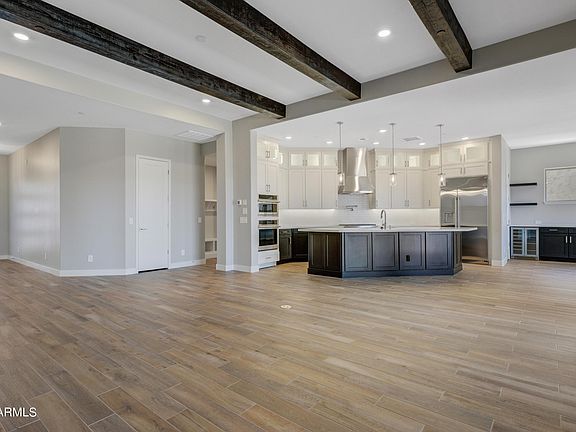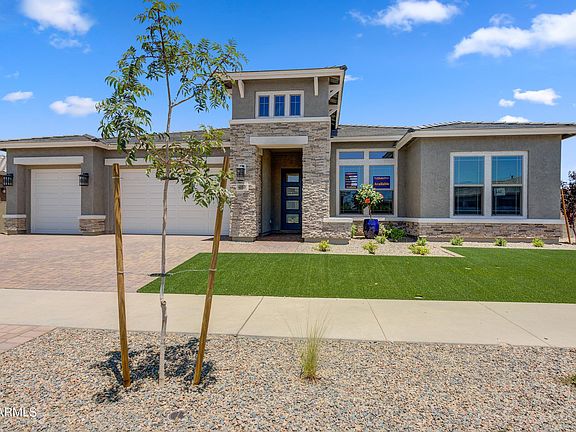 4 BED, 3.5 BATHS SINGLE LEVEL NEW HOME; Family rm w/tray ceiling w/beams opens up with a 16-foot sliding glass door to your 21-foot-by-22' covered Outdoor Living Area,; An enclosed study and hobby room give you the space for two people to work comfortably from home or enjoy a home gym. The gourmet kitchen has a 12-foot quartz island, two-tone black and white cabinets and GE Monogram appliances includ. 42'' built in refrigerator, chimney hood and a separate wine/beverage center. Backyard with plenty of room for a pool. The Owner's Retreat has a gorgeous walk-in shower, walk-in closet & extensive storage. Bonuses include plank tile flooring, upgraded carpeting/pad, 2-tone paint, 2x6 construction and EXTENSIVE NEW HOME WARRANTY.