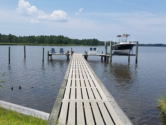 PRICED $40,000 BELOW TAX VALUE! Well built one story brick home, 5 bedrooms and 3 full baths. 23 acres of wooded and cleared land with pecan trees and grape vines. Let your dogs run free off leash. Could be great place for horses. Over 3000 feet of waterfront gives you the privacy you want. New roof 2012 and new gutters 2015. Hardwoods and ceramic tile through out. A boater's and fisherman's paradise. Private boat ramp on property; concrete pier with 7,000 lb dual motor boat lift; 4 ft water depth at end of pier. Live on the protected waters of Bond Creek, but only a short boat ride to the Pamlico River and the Intracoastal Waterway. Fish right off the pier for flounder, white perch, puppy drum and more. Possible investment potential. Local area is starting to see small camper sites spring up for weekend fishermen and hunters. With a boat ramp to offer and a field by the road, think of the potential income to be had by someone with an entrepreneurial spirt. Only 35 miles to Washington or New Bern and 50 miles to Greenville. Come and see this awesome property for yourself! Buyers' agent protected at 3%. Call 252-217-3603 or email kkelly021@gmail.com for showing or more info.