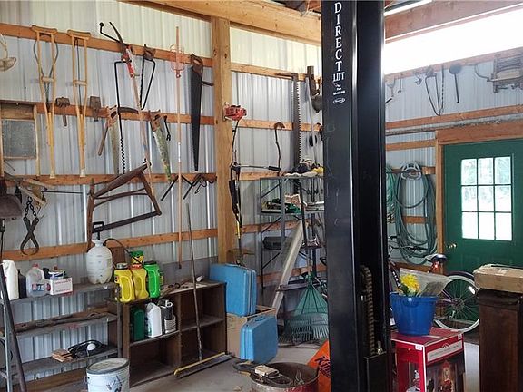 Country living at its' finest. This 2003, 1500 sq. ft. manufactured home comes partially furnished and ready to move-in. Included is an adjacent wooded lot for a total of 4.1 acres which could be cleared for additional home sites. Property could also be mined for gravel. A 1300 sq. ft. aluminum pole barn with 4T hydraulic lift, 12' overhear door, attached office area and pull-through garage make this a good fit for a repair shop, paint shop or anything in-between. This property has it all from automatic generator to partially fenced yard for your dogs to country quiet. 1000gal septic, new roof 2 yrs. ago, 100 & 200 A service and much more!