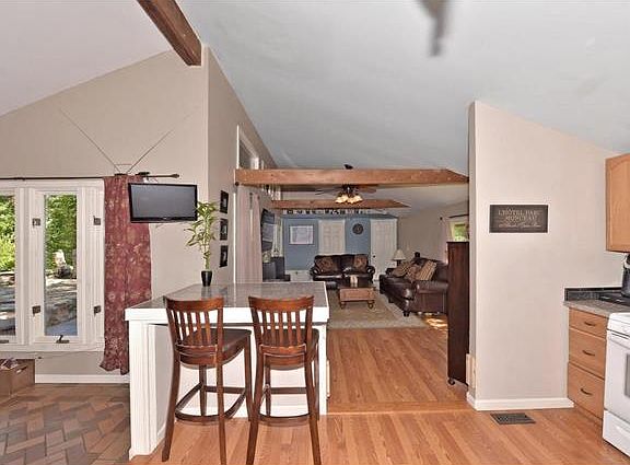 Is privacy and seclusion what you are after? Here you go!! This 2 possible 3 bedroom home with 2 full baths offers a contemporary yet rustic feel. The exposed beams & vaulted / cathedral ceilings really give this home an open and airy feel. The kitchen area is stylish. It offers a breakfast bar, separate dining area, pantry & access to the deck. The family room has the same feel with large windows for natural light! The divided bedroom floor plan makes this home very adult friendly keeping the kids at one end with their bedroom & full bath and the master being at the other end of the main living area. Off the kitchen is the nursery / sitting room / office/ 3rd bedroom. Make this room whatever! The sunk-in master bedroom is a private oasis w/ full bath, his & hers walk-in closets & private deck access. Other special features of this home include DETACHED GARAGE, patio area and SHOOTING RANGE! This home has new AC as of June 2017! ESPECIALLY STEEP DRIVEWAY! Super Private!!