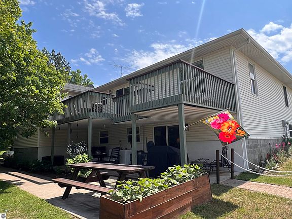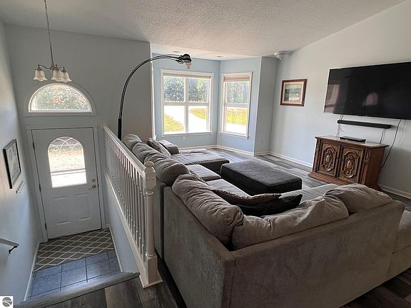 Contemporary and spacious bi-level with 4 beds and 3.5 baths on 2 acres just south of East Jordan! The main floor has an open concept great room with the living room, dining room & kitchen. Vaulted ceilings in the main area as well as updated vinyl plank flooring in the living room and hallways. 2 more bedrooms and a full bath are also located on the main level. Master bedroom has a nice ensuite bathroom with jetted tub. Storage is abundant here- there are closets and storage areas conveniently placed throughout the home. As you head down the stairs to the lower level, there is a large foyer side entry and a ½ bath conveniently located near the attached 2 car garage. The basement provides another 1600 of finished usable space – amazing for hosting large gatherings! Features a large family room, cabinetry and serving bar area, walkout basement, the 4th bedroom and another full bathroom. The back deck provides a great spot to dine al fresco; below the deck is a shaded patio that leads to the walkout basement. Fruit trees, a nice sized yard, and established landscaping around the property make this property a lovely place to call home. There are two separate outbuildings for more possibilities and storage. The 30 x 48 pole building was built in 2011 and features concrete floors and a loft. Wood burning furnace system housed in the detached garage is used as the primary source of heat, however there is also a forced air furnace. New well in 2010.