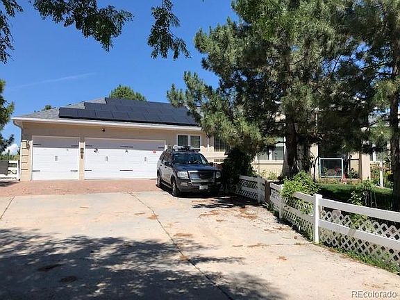 You have found "Home Sweet Home" and life in the country where you can see the stars at night. Located just inside Elbert County, this beautiful 4,000+ sq ft ranch with a walk-out basement is waiting for you. Main floor master, 3 bedrooms in lower level (one is non-conforming), large Trex deck to enjoy that morning cup of coffee. Kitchen island, breakfast room, sunroom. Solar installed in 2016. Over 300 pine, spruce, deciduous & fruit trees, garden area, 3 car insulated garage with work area. Property is fully fenced (3 sides with white vinyl), pasture for grazing. Furnace & AC replaced 2011, water heater in 2012, new garage doors 2019, new storm doors. There are 5 outbuildings (4 stall barn, hay barn, loafing shed, tack barn and RV parking with workshop). Close to Southlands Mall, 30 minute drive to DIA. Parker is an easy 5 mile drive. A one year warranty will be provided to Buyer. Bring your horses! Ready to move in. Bring all offers.