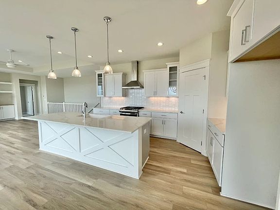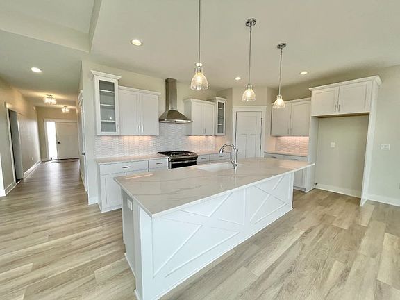 Welcome to this executive modern farmhouse ranch with over 3,100 total sq ft of finish! On the main level, you’ll love the open concept great room to kitchen with gas fireplace, built-ins, and large windows for plenty of natural light. The luxurious kitchen offers white and gray cabinetry, quartz countertops, stainless steel appliances with gas stove and range hood, and a walk in pantry. Right off the kitchen and dining area is the covered deck with composite decking, Westbury rail, and overlooks the yard with irrigation included. The spacious owner’s suite features a tray ceiling, large windows, dual vanities, full tiled shower, soaker tub, and oversized walk-in closet right off the laundry and mudroom. The main level is rounded off with a three car garage, two additional bedrooms, and full bathroom. The walk-out lower level offers 9’ ceilings, large second family room with space for sitting area and game table by the wet bar, guest bedroom, and full bath.