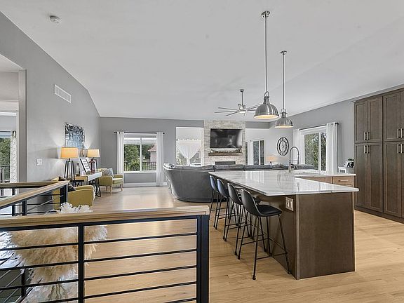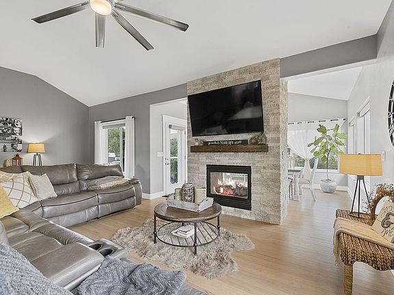 Comfortable living indoors & out! Open floor plan, fresh paint, hardwood floors & even a new kitchen sink are just some of the advantages to this move in condition home. A 2-sided fireplace for conversation from both the living and dining areas. Walk out to the extended deck with pergola that you can access from both the dining area & master bedroom. Spacious walkout lower level boasts family room, 2 BRs, bath & large storage area. Step out to spacious patio & onto the flagstone firepit with seating wall.