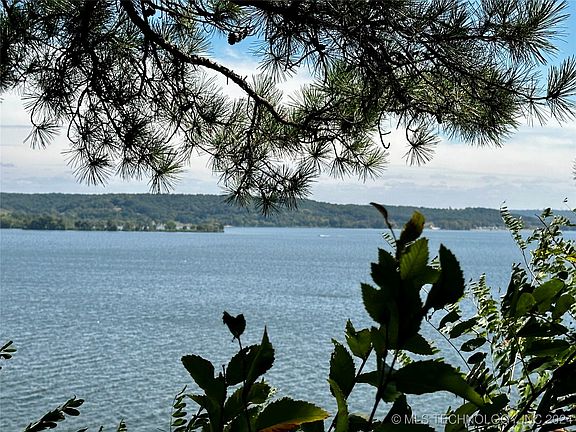This bluff lot has a fantastic 180 + degree all seasons eastern and southern view of beautiful Lake Hudson. Have your morning coffee viewing the sunrise over the eastern shore. This beautiful bluff lot also has a view into the cove to the south. Value of this property is in land only. There is a vacant mobile home on property. Water, electric, and septic are on property but utilities are turned off.