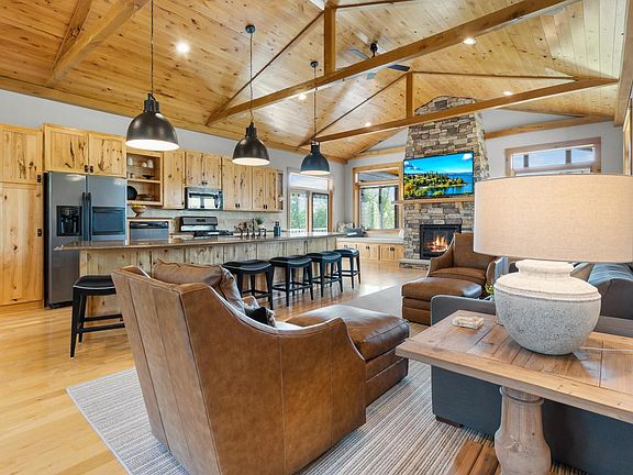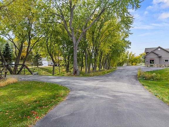 Imagine a few of your favorite things, acreage, picturesque water views, a heated oversized 1,891 square feet pole barn, open concept with vaulted ceilings, screened-in porch, a spacious west-facing deck, multiple gas fireplaces, sweeping panoramic views throughout all levels, and a white picket fence on a private cul de sac. This custom built one level living has so many amenities to love. Custom hickory cabinetry, large west facing maintenance free deck and awesome MN-must have screened in porch. Your main floor owner suite has the large walk-in closet and private fireplace and entrance to your deck. Steam shower and large dual sinks all with the convenience of just steps from the entertaining spaces. 3 bedrooms on one level with 2 more in basement. The lower level custom bar is made from 100 year old barn wood and has cool details. Great heated concrete floors. Outside your custom railroad bridge to your awesome pole barn and tons of land to play with. The possibilities, horse, chickens and fun ahead is almost limitless with these 7.5 acres of land. Store your own boats and toys this winter and enjoy this property all season long.