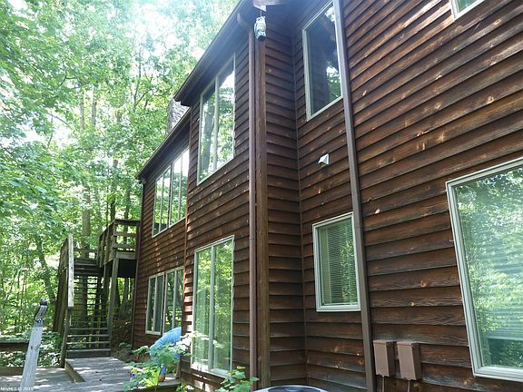 Representing all that is beautiful about living on Claytor Lake, this very well maintained passive solar home nestled among the trees on an .95 acre lot has privacy, quiet, and excellent lakefront access. The open plan contemporary home has huge windows that bring in light and views of green trees. The open main level has a great room with a stone fireplace at one end and a large dining space at the other - all open and with green views. The eat-in kitchen has tons of counter space and three pantries, and the master on the main level has two cedar walk in closets and a bath with shower and spa tub. There is a lower level den with masonry fireplace, decks, and a 2-car garage. Professionally landscaped, it has indoor-outdoor beauty everywhere you look. A charming screened porch off the kitchen is the perfect place for morning coffee or to watch the rain while you read.The waterfront has a dock and storage building. Move in ready, some furniture negotiable.