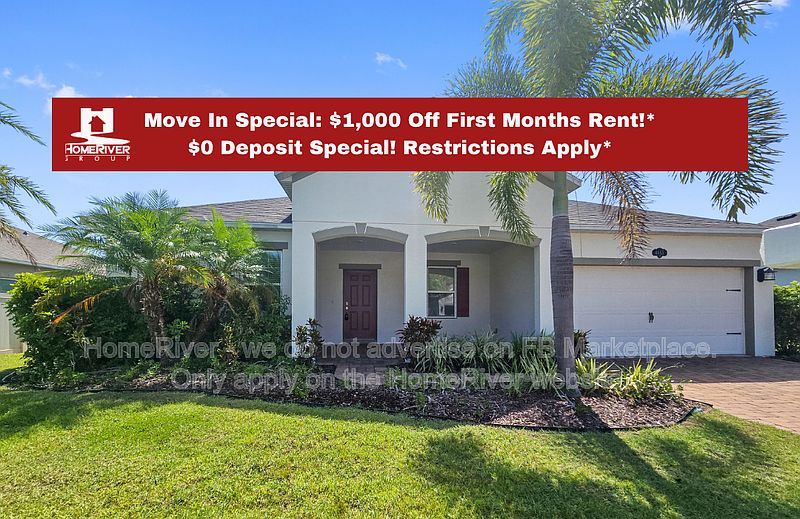 Move In Ready!- 4665 HEBRON DR, MERRITT ISLAND FL 32953 *ESTIMATED TOTAL MONTHLY LEASING PRICE: $3,199.95 Base Rent: $3,095.00 Filter Delivery: $5.00 Renters Insurance: $10.95 $1M Identify Protection, Credit Building, Resident Rewards, Move-In Concierge: $34.00 High-speed Internet up to 1 Gig: $55.00 *The estimated total monthly leasing price does not include utilities or optional/conditional fees, such as: pet, utility service, and security deposit waiver fees. Our Resident Benefits Package includes required Renters Insurance, Utility Service Set-Up, Identity Theft Protection, Resident Rewards, HVAC air filter delivery (where applicable), and Credit Building, all at the additional monthly cost shown above. MOVE IN SPECIAL TERMS & CONDITIONS Move In Special! Receive A one-time concession of $1,000 OFF the First Full Months Rent! The actual Base Rent for Property is $3,095.00 The rent reduction from Base Rent is $1,000.00 Your adjusted base rent for the first full month is $2,095.00 PROPERTY DESCRIPTION Welcome to 4665 Hebron Dr, a lovely single-family home nestled in the inviting Egrets Landing neighborhood of Merritt Island. Built in 2020, this modern residence offers four spacious bedrooms and three full bathrooms within an open-concept layout that flows effortlessly from the eat-in kitchen complete with granite countertops and stainless steel appliances into the living areas. The home features two primary suites, one of which connects to a comfortable screened porch overlooking a fully fenced, landscaped backyard. Located in a friendly, golf-adjacent community with highly rated schools nearby and just a short drive from the Kennedy Space Center, this home blends style, comfort, and convenience in one beautiful package. $0 DEPOSIT TERMS & CONDITIONS: HomeRiver Group has partnered with Termwise to offer an affordable alternative to an upfront cash security deposit. Eligible residents can choose between paying an upfront security deposit or replacing it with an affordable Termwise monthly security deposit waiver fee. LEASE COMMENCEMENT REQUIREMENTS: Once approved, the lease commencement date must be within 14 days. If the property is unavailable for move-in, the lease commencement date must be set within 14 days of the expected availability date. BEWARE OF SCAMS: HomeRiver Group does not advertise properties on Craigslist, LetGo, or other classified ad websites. If you suspect one of our properties has been fraudulently listed on these platforms, please notify HomeRiver Group immediately. All payments related to leasing with HomeRiver Group are made exclusively through our website. We never accept wire transfers or payments via Zelle, PayPal, or Cash App. All leasing information contained herein is deemed accurate but not guaranteed. Please note that changes may have occurred since the photographs were taken. Square footage is estimated. Please note this home may be governed by a HOA and could require additional applications and/or fees. $75.00 application/adult, a $150.00 administrative fee due at move-in. Tenants pay utilities and yard care. No Pets Accepted.
