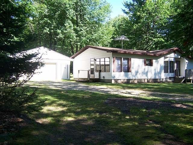 8.4 wooded acres across from over 1100 acres of state land. Neat and clean three bedroom, two bath home, with detached 2 1/2 car garage. Secluded setting off a blacktop road 1/2 mile from M-115 for commuting.