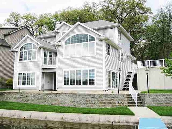 Treat Yourself to A Super Buy! This 4000+ square feet home is designed with the family in mind. The floor plan is open and there are plenty of areas to escape to. The abundant use of glass provides spectacular lake and sunset views. The beach is gradual and very sandy. There is 183 feet of lakefront with a seawall. The master bedroom has a sitting room and a laundry in the master bath. The main level of the home is wheelchair accessible. The kitchen is spacious and has a breakfast bar, pantry and double wall ovens. The lower level family room is designed for carefree entertaining and features a second kitchen. In addition there is a 38x13.6 game/storage room in the lower level. The den on the upper level could be a 4th bedroom. Possession at closing to get in for the summer. All appliances included. Home warranty included. Property is assessed @ 662,200.