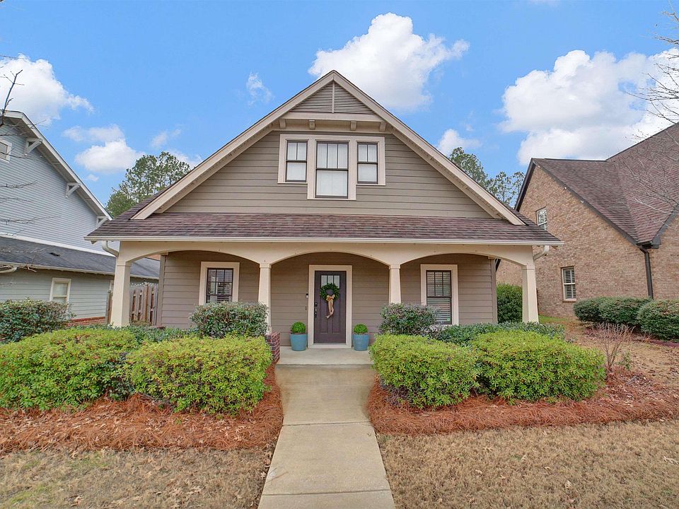 Chace Lake neighborhood of Hoover, this charming Craftsman-style home presents a rare opportunity. The main level features an open-concept layout consisting of a generous great room with a gas fireplace, dining area, half bath, laundry room, & a beautifully designed kitchen with breakfast bar, boasting stainless steel appliances, elegant white cabinetry, & granite countertops. A main-level master suite provides a private retreat with a spa-like bath, including separate shower, garden tub, water closet, & oversized walk-in closet. Upstairs, you'll find three additional bedrooms, full bath, & extensive attic storage. Enjoy coffee on the front porch & appreciate the low-maintenance yard & two-car garage. This community includes a pool & clubhouse, swing set, scenic 8-acre lake with walking trails near the Cahaba, sidewalks to nearby shops & restaurants, & zoning for Spain Park school system. This home truly combines comfort, style, & an unbeatable location.