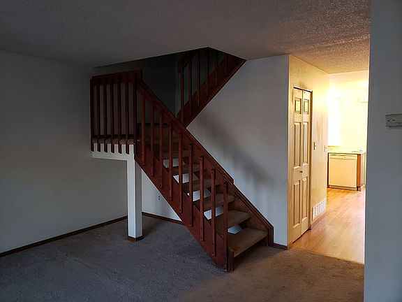 2 story townhouse with 2 master suite bedrooms. Each bedroom has an en-suite 3 piece bathroom. Kitchen has a newer laminate floor. Very nice stacked washer/dryer is included. All bathrooms have tile floors. Recent paint and carpet. Carpet has been professionally cleaned. Very recent Central efficient heating and A/C. No animals please. Call for a personal appointment. Neighborhood Description Close to Cherry Creek recreational area. Extremely close to Sagebrush elementary - walkway directly to the school across the street from this house.