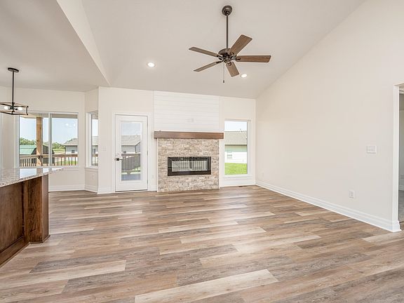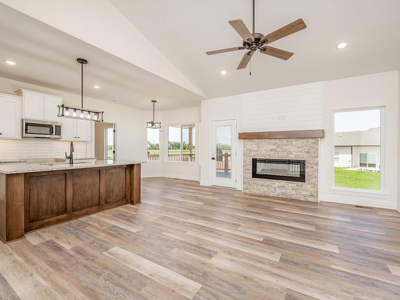 Brand new home in Trinity Point Addition. 3 bedrooms, 2 baths, and a 3-car garage with an unfinished view out basement. Step inside and enjoy the all luxury vinyl tile flooring in the main living areas. Living room features vaulted ceilings with an electric fireplace. Master bedroom suite includes double sinks, walk-in shower, granite countertops and a large walk-in closet. 2 additional carpeted bedrooms with a hallway bath. Kitchen includes stainless steel appliances including dishwasher, range/oven and microwave. 10 ft. vaulted ceilings in the living room and 9 ft. ceilings throughout. Enjoy the 16x14 covered composite deck. Basement finish options can include a family room, 2 additional bedrooms, bath and a storage room. Special taxes only $138/month. Sewer and water specials have been paid off.