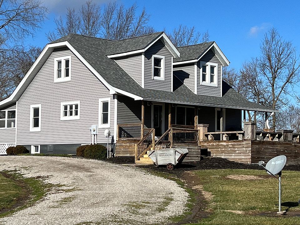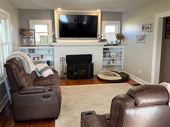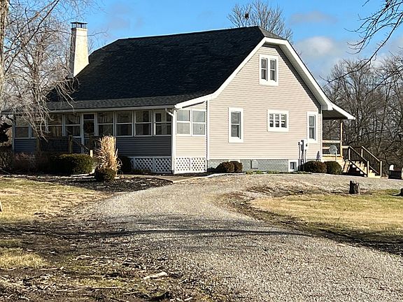 Beautiful Craftsman 3 Bedroom 2.5 bath home on almost 5 acres! Have your garden and your animals on your own mini farm! Beautiful updates to home with lots of original features. Updates in the last few years have been kitchen, windows, main level master suite, upstairs bath, HVAC, and siding. Prev owner had gutted and replaced all electrical and plumbing as well. Fireplace is corn burner. Original hardwoods on main level. Barn has concrete floor and newer overhead doors with openers, and newer roof. Barn/detached garage have water access nearby and 200 amp service. Approximately 1 acre is fenced. Invisible fence around much of the front and back yard. Seller never used but will leave it. All appliances including washer and dryer stay!