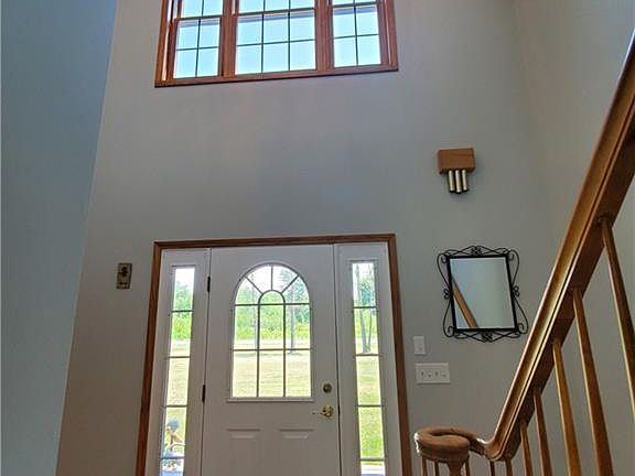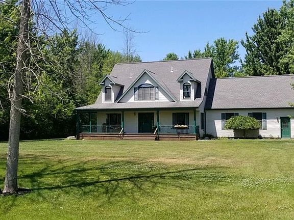 Stunning Contemporary Cape Cod built by Barden Homes. Relax on the covered front porch or explore the 4+ park like acres known to be home to at least one owl and lots of deer for the hunter! 2247 sqft with 4 beds, 2.5 baths and hardwood floors throughout 1st floor. Gorgeous Living Room boasts of a cathedral ceiling, wood burning fireplace and 2nd floor balcony. Large 1st floor master bedroom suite with whirlpool tub, separate shower, and walk-in closet. Formal dining room for entertaining along with a sunny breakfast nook. Off the kitchen is the 1st floor laundry, door to garage and stairs leading to the finished room over the garage providing extra living space, perhaps an office, etc. Huge 30'x48' pole barn with electric service. 10' Superior wall basement with an exterior walk out. This home has just about everything you could ask for in country living with luxury. Owner says he caught his biggest deer ever, out back, last year. Showings begin at open house, Sunday, July 19th from 1-3pm.