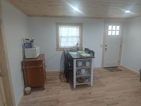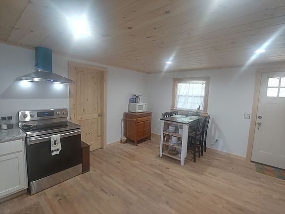 Khaki color vinyl siding. The roof is of Metal type. Siding is in good condition. Big 2.29 acre yard. New Vinyl Windows . Interior Features: Rooms in fair condition. New carpet. New central AC Unit. New water Heater. New Well pump. Shed.