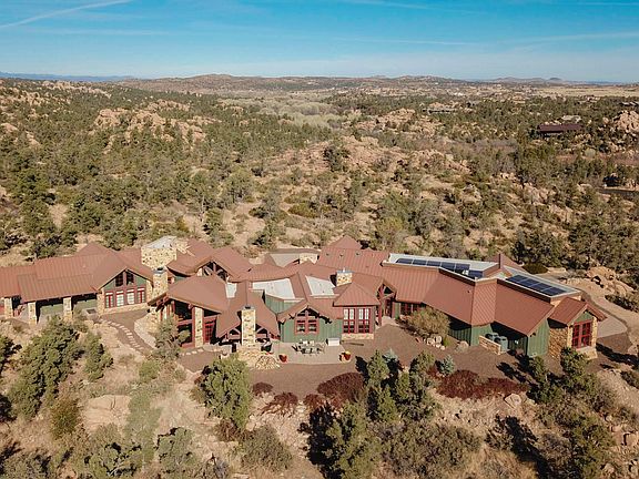 Granite Mountain beckons from this highly private 6195sf. Phantom Hill estate on over three acres in gated American Ranch. Bordering Prescott National Forest on back property lines, this exquisitely designed home utilizes the highest standard of materials nature provides. Perfectly positioned to capture unobstructed views and offering a seamless lifestyle from quiet retreat with four en suite bedrooms to expansive great room style living with state of the art kitchen for indoor to outdoor entertaining under wide open skies. American Ranch is a premier equestrian development with facilities and trail access.