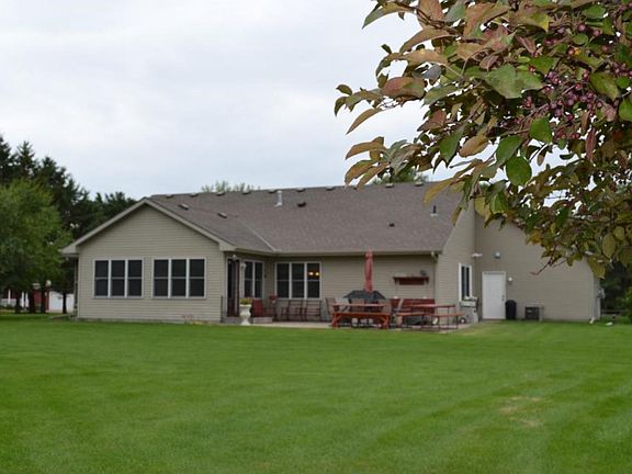 MAJOR PRICE REDUCTION!!! Welcome to this private oasis of convenient main floor living! 3 large bdrms, & 2.5 baths, generous room sizes, & French doors to the inviting sun room. (walks out to the patio, overlooking an acre of quiet, well maintained yard). Irrigation system, storm shelter, wired for generator back up. Oversized insltd, heated, sht rkd garage w epoxy floor. Right across from the lake, enjoy the call of the loon! (lake is stocked every other yr w walleye!) Slab on grade!