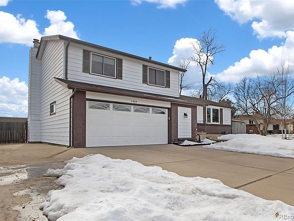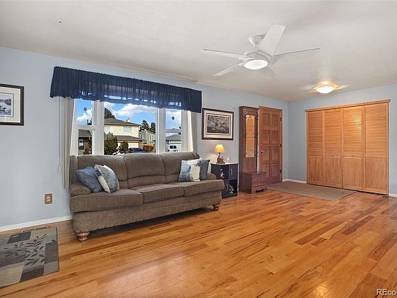 Bright and sunny cottage-feel tri-level home tucked away in a private cul-de-sac in Thornton’s desirable Woodglen community! Step inside and enjoy a main-level open living and dining room open floorplan enhanced hardwood floors and a cozy pellet stove with natural stacked stone surround and wood mantel. A cutout to the kitchen brings in extra light and a bar-height breakfast bar provides more seating options. The spacious eat-in kitchen has ample shaper cabinetry, plenty of countertops space for easy meal prep, and a desirable gas range. Lower-level family room with a comfy fireplace and glass doors to the private covered patio for easy summertime BBQs. An additional family room found in the finished basement, complete with a great wet bar – a perfect spot for entertaining family and friends. Beautiful wood steps lead the way to the upstairs three generous-sized bedrooms, including the primary retreat with private en-suite bath. Incredible over-sized backyard with a new composite deck off the dining room, covered patio off the family room, newer sodded yard, and a wonderful shed that complements the home nicely and provides great space for outdoor tools. Over-sized 2-gar attached garage with space for cars and gear, plus an added long parking pad next to drive for RV or extra parking. Ideally located with Cherry Park Pavilion across the street; walking distance to the local elementary school, and quick and easy access to, nature trails, shopping, restaurants and community center! This home is a rare treasure not to be missed.