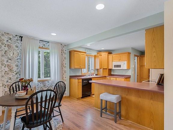 Charming 1.5 story home, ideally situated on a cul-de-sac and overlooking the sixth hole of the golf course, with convenient access to the nearby driving range. This property offers a desirable combination of privacy, scenic views and updates! The main level features a spacious master bedroom with large walk in closet and walk through full bath. The open concept kitchen and dining area flow into the spacious living room, which offers direct access to a large deck-perfect for entertaining or enjoying the peaceful backyard views. Main level laundry adds convenience to the home! Upper level has 3 additional bedrooms for your family or guests! The lower level includes a versatile bonus room which could be used for family room or game room. Recent updates include new steel siding, roof, AC unit, some new windows, and washer/dryer. This property combines charm and location. An excellent opportunity to live in a quiet neighborhood setting close to the golf course and lake!