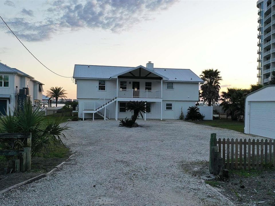 Incredible, waterfront listing on Terry Cove, showcasing vast bay views; enjoy unbeatable sunsets from the multilevel, 5BED/3BA home or on the private, deeded boat dock. Boaters can really appreciate a deep-water, fresh water supplied, covered dock with lifts and potentially room for multiple boats, jet skis, etc. and over water storage. Take advantage of having 2 separate dwellings on each level, creating the perfect potential for a large Mother-in-law suite or rental on the lower level. The main level (2nd level) holds 3BED/2BA with travertine/granite floors throughout, flagstone masonry wood-burning fireplace, vaulted ceiling, quartz/granite countertops, and access to 3 divided balcony spaces. A huge, screened-in portion (21 X 20 w/ ceiling fan) off the living room splits 2 other balconies off 2 bedrooms; 1 of which is covered and leads down to the partially fenced yard and large (740 SF), covered patio right outside the lower level of home. Downstairs, the remaining 2BED & 1BA reside; enjoy a large open living space (LVP flooring) w/ a second full kitchen holding milk quartz/granite counters and a second spacious laundry room. Other features include a well w/ sprinkler system and a detached, 2-car garage w/ power/water and an RV pad with 50-amp service (w/ cable, sewer, & water for any size RV)! This home's location is truly exceptional; aside from boat travel, reach Pleasure Island Tiki, Orange Beach Hardware, the Orange Beach Rec Center, and more in only a 5-min golf cart ride. Schedule a showing to come take a look at this spectacular listing, today!