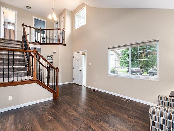 GREAT 5 bed 4 bath two story. Updated engineered wood floors thru out the main and upper level. New carpet at custom wrought iron-wood main staircase. Open layout with everything you need. Large kitchen with eating space and plenty of cabinet space, stainless steel appliances. Family room just off kitchen with cozy gas fireplace, formal living, formal dining. Bright and Open. Nice laundry/mud room on main washer and dryer included. Large master with 4-piece bath and spacious walk-in. Nice sized secondary rooms with large closets. Basement living area includes private bath, bedroom, and living area. 3 car garage, fenced yard with custom stone patio and covered front porch. Spectacular location walk to schools, park, and rec center. High efficiency HVAC system with Tankless water heater. This one is clean and ready to go!