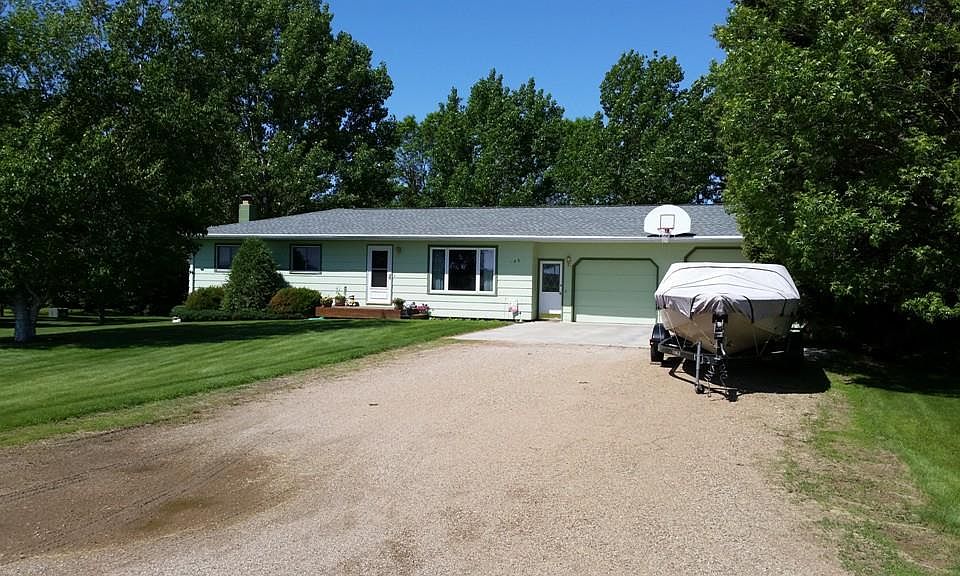 Looking to live on the edge of a thriving community? Look no further. Here is a 3 BR, 1.75 bath ranch style home located 2 miles north of Velva. It is situated on a private lot with lots of mature trees surrounding the house. On the main floor you will find a large living room, an ample sized dining area which has a built in hutch, three bedrooms, one full bath, a convenient kitchen with quartz countertops and a nice backsplash. To finish off the main floor there is a 14 x 14 Four Season Family Room featuring windows all around and a door to go out onto your 400 sq ft wrap around deck. In the lower level you will find a huge non egress guest room with wall to wall closets, an office, 3/4 bath, a big laundry room and a large, comfortable family room perfect for the kids to hang out in(with fireplace). This house has 13 closets and lots of storage! The garage is 34 X 24, insulated and part of it is heated. There is a 12 X 20 barn with 2 lofts and electricity, an 8 X 10 garden shed, apple trees which produce an abundant amount of apples and lots of other trees and bushes to provide nice shade. The windows are Marvin triple pane. School bus to your door. You will not want to miss out. Call your agent today to arrange a showing of this quality built and well maintained home.