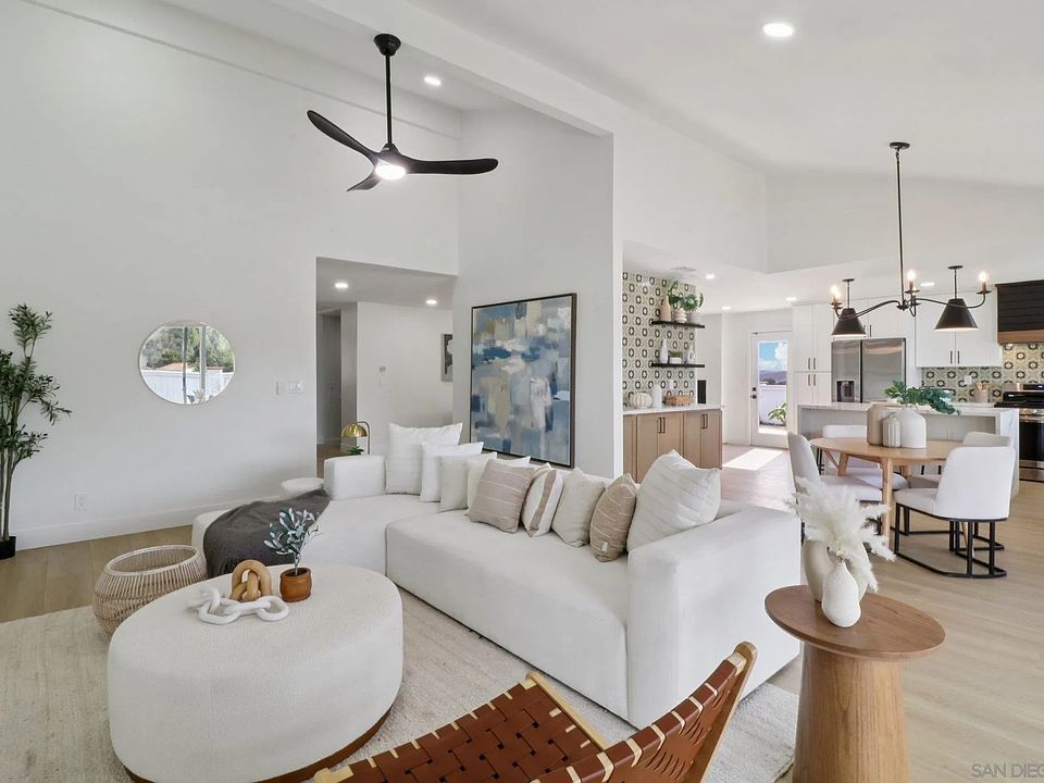 Experience Fallbrook living in this elegantly remodeled single-story retreat, set on 2.45 acres of exceptional privacy with sweeping mountain and canyon views. Thoughtfully updated throughout, this 5-bedroom, 3-bath residence offers a sophisticated blend of modern comfort and timeless design. Expansive living spaces showcase new windows and sliders that frame the surrounding landscape, while the reimagined chef’s kitchen features all-new cabinetry, quartz countertops, and premium appliances. The serene primary suite opens directly to the backyard and includes an upgraded bath with dual vanities and a walk-in shower. All bedrooms are positioned on one level for effortless living, with a versatile fifth bedroom ideal as an office or retreat. Outside, enjoy a fully fenced pool area, covered patio, and uninterrupted vistas across rolling hills. The expansive grounds offer RV parking, room for an ADU, and space for horses or future improvements. A private gated driveway elevates the sense of exclusivity while keeping the home conveniently close to town. With no HOA, this property delivers a rare blend of luxury, privacy, and contemporary elegance in one of Fallbrook’s most desirable settings.