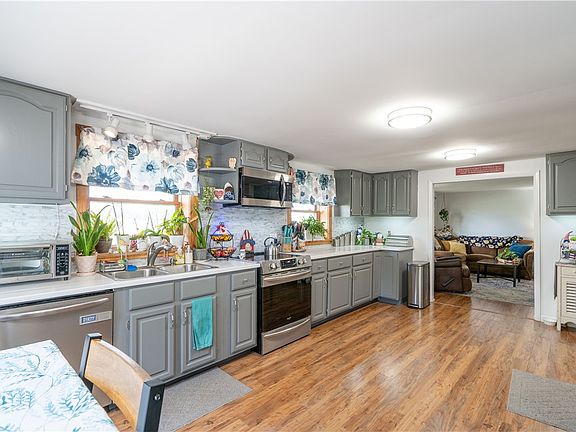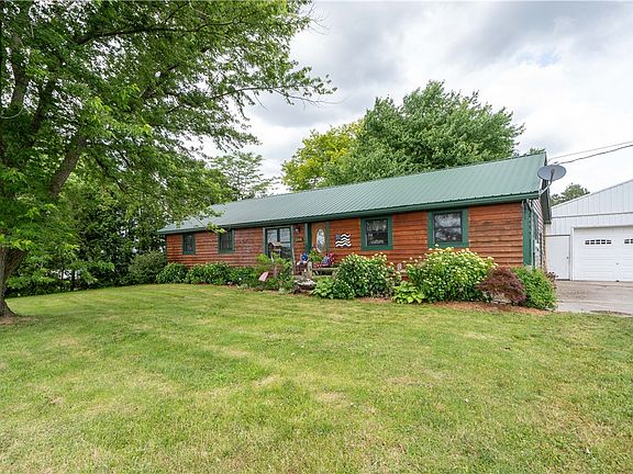 Welcome to this Impressive Ranch in Elba comfortably situated on 4+ acres and offering 3 bedrooms, 1 full bathroom, 1,440 square feet and a large 30x60 attached outbuilding/garage. Enter the breezeway and into the new and spacious kitchen featuring sprawling corian countertops, expansive custom cabinetry, eat-in area, pantry & stainless steel appliances. Relax in the comfortable living room which flows right off the kitchen making it an ideal hosting spot! Enjoy first floor living w/ all 3 bedrooms on the main level including the oversized main bedroom w/ double closets, the sharply updated bathroom w/ jetted tub & tile backsplash to the ceiling & First-floor laundry room w/ a walkout to the good-sized deck & yard. The private backyard offers plenty of entertainment options whether you want to eat dinner on the deck, enjoy a fire by the pea gravel patio, relax by the koi pond or just appreciate the scenery. You can also walk back to the wooded portion of the property! Attached 2.5-car garage w/ outbuilding features a great shop space, office space, storage and more! Metal roof, central air and public water! Delayed Negotiations begin Thursday, 6/20/24 at 1pm.
