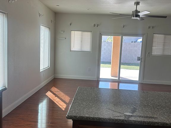 This lovely colorful home has 4 bedrooms and 2 baths. Hardwood floors throughout. Upgraded countertops and faucets and fixtures. Ceiling fans throughout. Small RV parking. This home has a fully finished garage. Landscaping is fully contained with greenery, and low maintenance. No pets , no smoking. Please complete an application on Zillow so we may qualify you. No tours without qualifying. 1 year lease. Then Month to month