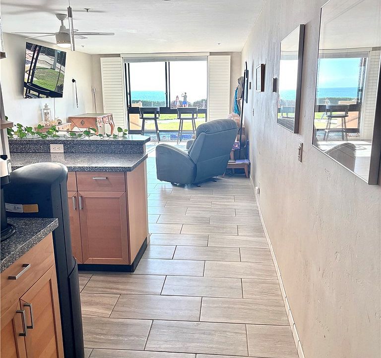 Owner is retiring and relocating from this prime ocean front location. The 1 bedroom 1 bath bright open floor plan is perfect for your home or an investment. Features high-end Travertine floor, granite countertop, brand new cabinets and breakfast bar. Front door secure entrance, private garage parking spot with storage, private court yard featuring a brand new gas BBQ grill and entertainment area, heat year around pool and hot tube, also large penthouse space available to all home owners. Just close from the beach, food and shopping. This is a must see!!