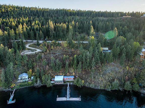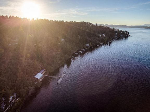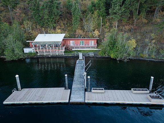 Rare larger parcel with 200 feet of frontage. Cabin needs TLC. This 1 and a half story cabin is ideal for generations to come. Sleeping space for many. Two bedrooms on upper floor in main cabin. Large deck overlooking lake Coeur d'Alene. As close to the waters edge as possible. Calm waters surround the large dock system that can accommodate boats, jet skis, paddle boards, and all kinds of water activity.