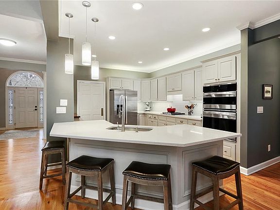 - Kitchen Features: Breakfast Bar, Eat-in Kitchen, Pantry, Stone Counters, Kitchen Island, Breakfast Room, Cabinets White
