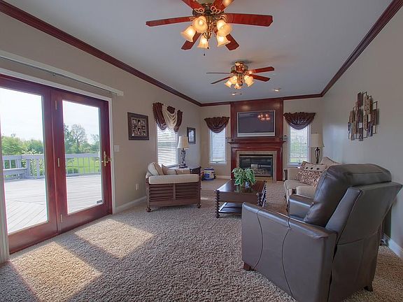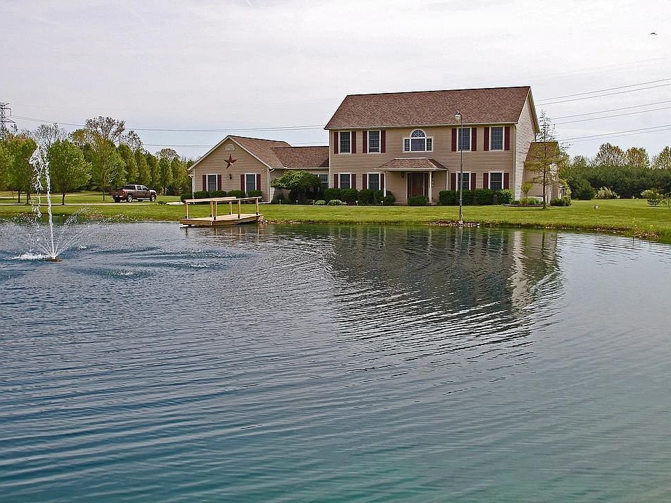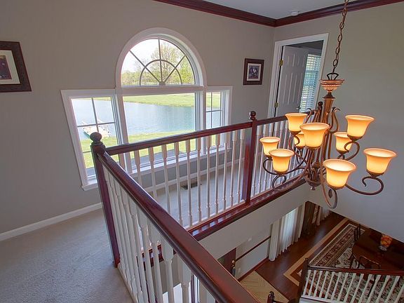 Country Estate sitting on 5 acres in desirable Liberty Township. 1 acre stocked pond with fountain and dock. 24' x 32' outbuilding w/ 1/2 bath rough in. Two Story foyer with bridge to Owners' Suite featuring wood floors and an amazing bathroom renovation in 2016 boasting heated flooring and a custom tile shower. 9' ceilings on main level. Center Island Kitchen w/ granite countertops, 42'' cabinets and ceramic tile backsplash. Whole house natural gas generator. Beautiful Travertine flooring in Kitchen, Foyer, Bathrooms and 16' x 18' Laundry Rm. Granite countertops in all bathrooms. 22' x 28' deck, 16'x 26' patio. Natural gas line ran to outbuilding. Must see to appreciate.