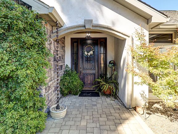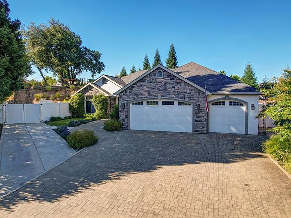 Stunner in West Redding! Desirable 4 bed/2 bath split floorplan Custom home on over 1/2 acre in Redding city limits. Gorgeous vaulted beam & wood paneled ceiling plus showpiece fireplace wall set the stage for this inviting space. Well appointed kitchen with stainless Thermador appliances, granite countertops, 5 burner gas range, coffee zone, pantry & more. Sparkling new saltwater pool(2024) with Pentair equipment & APP-controllable LED lighting. Pool has generous seating/entertaining area. Large Primary bathroom with dual vanity, walk-in shower and separate soaking tub. Primary closet can accommodate all your clothing and accessories. Bedrooms are good sized too. 4th bedroom is very multi-purpose - could easily be used as a home office, study, or family room. Guest bath also has dual vanities plus door access to pool area. Custom outdoor staircase to upper level of property. Includes a fenced vegetable garden, chicken coop, duck pond area and apple, pear, peach(2 varieties), Meyer lemon, almond, and fig trees. This home is also on Redding Electric Utility, NOT PG&E electric! Room for boat and RV parking as well. There are so many extras to check out!