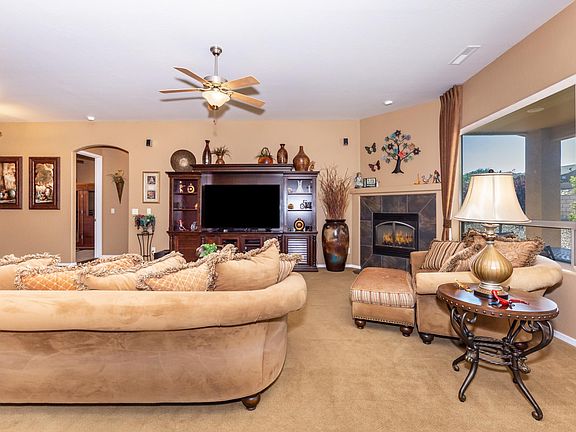 This former model home is the perfect blend of comfort, spaciousness, and luxury. Located in the highly desirable community of Granville, this home offers many upgrades including 3 car garage with epoxy flooring, lovely kitchen with granite counters & newer stainless steel appliances, cozy fireplace, waterfall feature in backyard, gorgeous draperies, whole house water system, newly painted (exterior), surround sound, security system, central vac system, beautifully manicured yard with drip system, office/den, 14 ft. ceilings, and expansive great room. Enjoy Granville's active lifestyle and amenities, pool, tennis, basketball, parks, close to hiking trails and bike paths, community clubhouse and so much more. You will fall in love with this immaculate home! Some furniture included in sale.