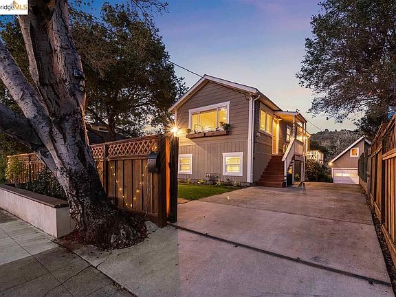 Unconventional & full of surprises, 4668 Reinhardt greets you w/ a sculptural oak tree, & redwood gate. Beyond this private entry is a home w/ Bohemian chic style & Buttercup Yellow exterior doors, open living & kitchen space w/ wood-burning stove, & front window with Bay view. The kitchen has handsome Hale Navy base cabinets, brass hardware & new made-to-order brass light fixtures (2020). This home offers surprises beyond its sq footage with a detached office & bathroom that Bobbie added for his wife, Ineca, to work from home, to the detached garage w/ loft space. There are two large decks, raised garden beds and a fully fenced-in lot for gardening, playing & relaxing. The upstairs has living space, 1 bdrm, & a full bath. The bright, lofty stairwell w/ skylight & art gallery wall lead you to loft-style living that the family used as their sleeping quarters, with a full bathroom for themselves & their two children. Located on a sweet street in Redwood Heights/Upper Laurel