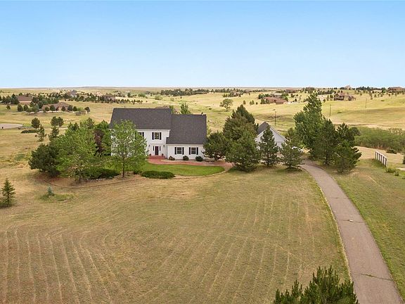 Location, Location, Location! This quiet country 2-story home with finished basement sits on 5.1 Acres of Rolling Hills. A Convenient 10 minute drive to Southlands Mall, 7 minutes for King Soopers, Douglas County Schools, Parker address, Elbert county taxes. Who says you can't have it all? This spacious home has 3 bedrooms upstairs plus a large bonus room, Open floor plan with beautiful large sliding doors opening to the lovely backyard patio overlooking the kids play area and rolling hills. Basement includes the laundry, open family room or gaming area, study or 4th bedroom which includes a private bath. Located on a cul-de-sac with 2 car attached and 2 car detached garage for all toys. Call for your appointment today!