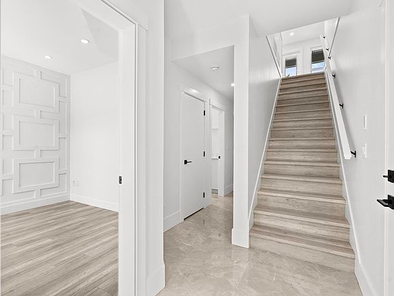 This 2 Storey home has 3 bedrooms and 2 full bath upstairs. Open Great room floor plan with gas fireplace in the living room. French doors open to huge 24'5 X 7'2 covered sundeck w/gas bbq hook up and mountain views. Kitchen has SS appliances with Gas stove and fridge w/ water dispenser. Primary bedroom includes large walk in closet along with a beautifully designed bathroom. Primary Bedroom also features wainscoting feature wall and a faux ceiling with rope light. Large windows throughout allows for tremendous natural lighting to shine through and gorgeous mountain views all around. Double car garage parking with epoxy coating and additional parking on driveway. Roughed in AC hookup if required.