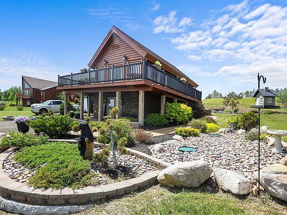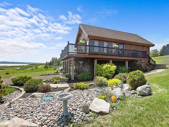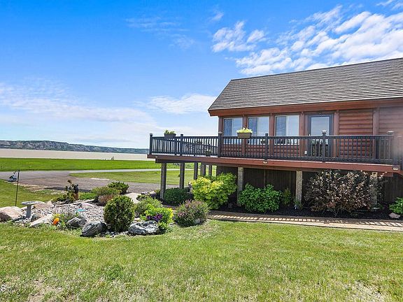 Welcome to this charming two-bedroom, two-bathroom log home nestled just 30 minutes from town. From your wrap-around deck, take in the breathtaking, unobstructed views of Lake Sakakawea--perfect for morning coffee or evening sunsets. Inside, the vaulted ceilings create an airy, spacious feel that complements the cozy log cabin ambiance. The walk-out basement provides extra living space, ideal for a family room or guest area. It also boasts heated floors and beautiful tiling in the walk in shower. The home is thoughtfully designed with one bedroom and bathroom on each level, offering privacy and convenience. Combining rustic charm with modern comforts, this home is your perfect lakeside retreat. Don't miss the chance to make this peaceful haven your own!