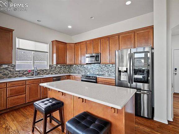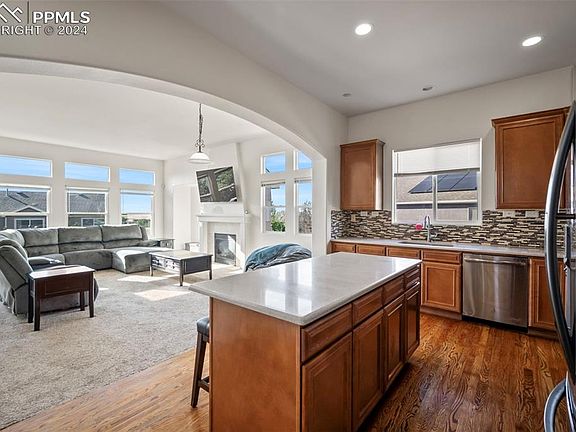 Welcome to Colorado Living! This beautiful 2-story residence offers a perfect blend of function and comfort, boasting a finished basement with a walkout to the backyard, complete with a brand-new deck. Enjoy views of the Front Range and Pikes Peak from the second-level master suite, complemented by an even larger master suite on the main floor. Key Features: - **Spacious Layout**: This home features 10-foot ceilings, 4 bedrooms, and 4.5 bathrooms, providing ample space for your family and guests. - **Kitchen**: The kitchen is a delight with stainless steel appliances, oversized 42-inch cabinets, and a large island for extra counter space. It seamlessly opens to the living area with access to the new deck. - **Versatile Basement**: The walkout basement is an entertainer's paradise, featuring a large entertaining area, a theater room, an office, and a half bath. - **Garage and Lot**: A spacious 3-car garage provides ample storage and parking. The property sits on a nearly quarter-acre lot, most of which is low-maintenance for enjoying Colorado. Upstairs, you'll find three additional bedrooms and two bathrooms, including an en suite, ensuring everyone has their own space. This home is designed for comfortable living and combined entertaining. Don't miss out on the opportunity to own this exceptional property with peak a boo mountain views. Contact us today to schedule a viewing!