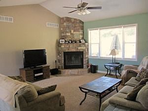 Ranch built in 2010, IJoist, 9 ft bsmnt, 5 bdr/4 bath, Impressive open floorplan shows off georgous dream kitchen with 18'' earth tone floor tile, granite countertops that highlight the custom knotty alder cabinets, glass tile backsplash and stainless appliances, the bar has seating at least 4 plus a dining area! The lg LR displays a stone FP and more! NewHomeInCountry.com for details. Must see!