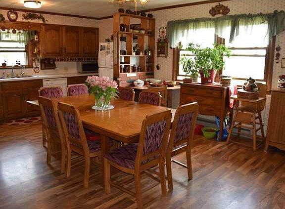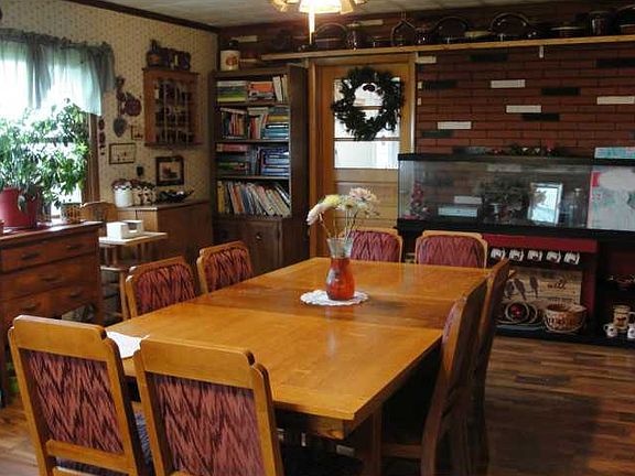 See this 4 bedroom, 2 bath home close to town. Some great features are a large "eat in" kitchen, the dining room is currently used as an office and display room, enclosed front porch, a huge covered patio at the rear of the home, and a 38x32 outbuilding with cement floor. The 1 car attached garage has been converted into a 5th bedroom and can be changed back to a garage. The propane forced air furnace has not been used by the family but can be used if preferred. There is no propane tank at this time. Recent improvements are new flooring throughout most of the main floor, water heater, well pump, updated breakers, sump pump. A cistern is located in the back patio, well pump between home and outbuilding. Softener is leased from Culligan.