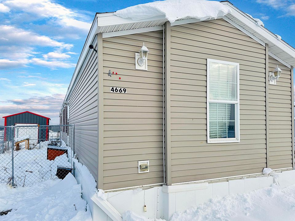 Welcome to your cozy and spacious 3-bedroom, 2-bathroom manufactured home! Nestled in a quiet neighborhood, this property offers the perfect blend of comfort and functionality. As you step inside to the left you’ll be greeted by the large master bedroom, complete with a full en suite bathroom and a generously sized closet. The master bedroom, strategically located on the opposite end of the additional bedrooms, provides the perfect retreat for privacy and relaxation. Take a right turn through the cleverly disguised entry door that seamlessly blends in with the kitchen cabinets, adding an elegant touch to your living space. The kitchen comes complete with beautiful dark cabinets with the perfect amount of natural light from the large windows above the kitchen sink. The spacious living room is the heart of the home, providing a welcoming space for family gatherings and entertaining. Adjacent to the living room, you'll find two more bedrooms and a full bathroom, making it an ideal setup for families or guests. Included is a nice 2016 14x7 metal shed to store all your yard equipment as well as a chain link fenced area. Don't miss the opportunity to make this charming manufactured home yours. Schedule a viewing today and experience the comfort and convenience it has to offer.