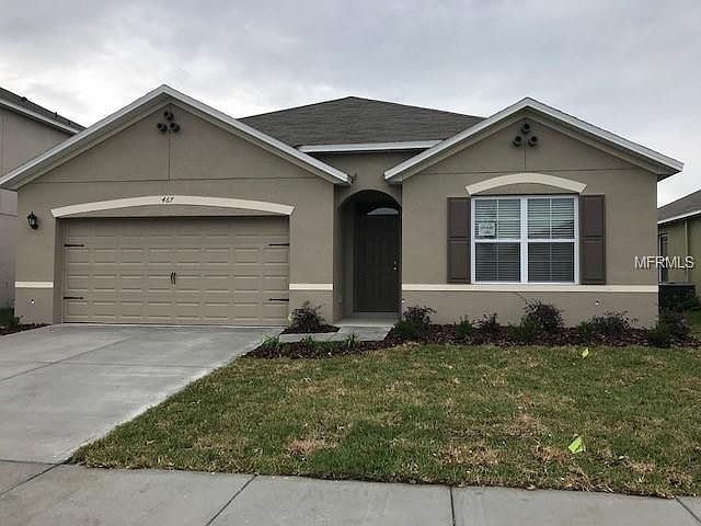 UNDER CONSTRUCTION. Wow! Fabulous home with 3 way split floor plan, 18x18 tile throughout, decorative arches, 36'' cafe color cabinetry, granite counter tops throughout the home not just in the kitchen, stainless steel appliances and blinds included with this open floorplan. Tons of storage and covered lanai! Community pool under construction in this quaint community just 5 minutes from I-4, 20 minutes to Disney and minutes from Posner Park! Come view your new home! Photos are of similar model but not that of exact house. Please note that no representations or warranties are made regarding school districts or school assignments; you should conduct your own investigation regarding current and future schools and school boundaries.